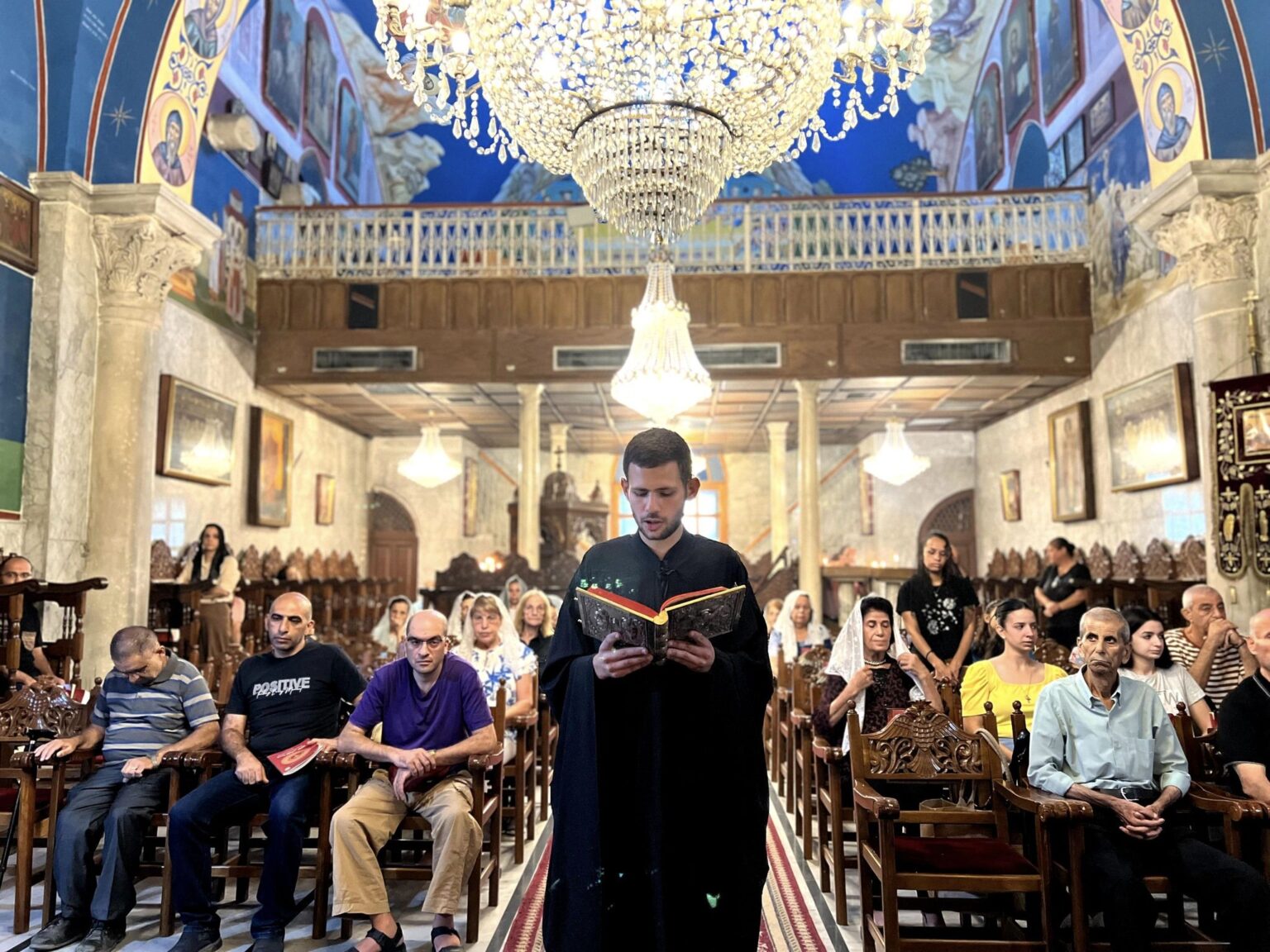 A recent photograph taken during a mass at Saint Porphyrius Orthodox Church.